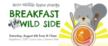 You are invited to an Applebee's Flapjack Fundraiser Breakfast, "Breakfast on the Wild Side". Proceeds benefit Sierra Wildlife Rescue's mission of preserving El Dorado County's wildlife by rehabilitating and releasing back into the wild injured and orphaned animals.
