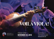 A sensational experience! The glorious depth of the cello and soaring violin combined in one instrument ... the viola! This extraordinary concert program showcases the elegance of an oft-ignored instrument and the spectacular virtuosity of Croatian violist Ivo Bokulic and the Music at the Mission Chamber Players.