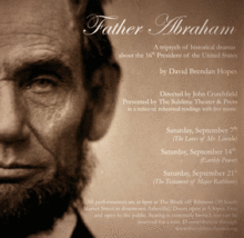 During the month of September, The Sublime Theater will present "Father Abraham," an American Epic, on the life of Abraham Lincoln, by award-winning playwright David Brendan Hopes.