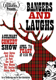 The Haven, winner of Improper Bostonian's award for "BEST SAUSAGE IN BOSTON" hosts an evening of comedy and sausage to round out it's TARTAN WEEK FESTIVITIES. Come along and sit down un the sumptuous surroundings of The Haven and enjoy a house made quality Sausage supper paired with a Broughton Ales Wee Heavy, OLD JOCK. The evening will unfold with some of Boston's best up and coming talent hosted by JENNY ZIGRINO.