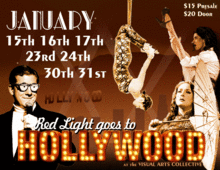 The Red Light Variety Show presents: HOLLYWOOD Lights Camera ACTION! Join the Red Light Variety Show as we pull back the curtains on the delightfully good and sinfully bad sides of HOLLYWOOD. This star studded show features the hilarious emcee skills of Joe Golden and Veronica Von Tobel, the spectacular LIVE musical talents of The Green Zoo, and all of the jaw dropping you entertainment you would expect from a Red Light show including comedy, aerial arts, modern dance, burlesque, and so much more."
