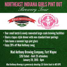 Join us on January 29th as Mad Anthony Brewing Company hosts Northeast Indiana Girls Pint Out.