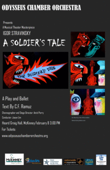 A supernatural tale of a soldier faced with temptation, encounters the devil and promises him richness and wealth in return for his fiddle. This performance is a premier in the North Texas region. Odysseus Chamber Orchestra will be joined by Choreographer and Stage Director: Amiti Perry.