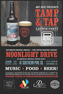 Advanced ticket purchase encouraged. Includes souvenir pint glass with beer from Southbound Brewing Co. including the newest seasonal and Perc/Southbound collaboration, Moonlight Drive. Valid ID Required.