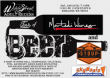 * Ping pong * Air hockey * Video arcade games * Dance dance revolution * Hurricane simulator * Pool Table and more * We will have a Adult Arcade Photo booth * Walking Magician (21+ Material * A taste of Stoup Brewery * A taste of Martedi Winery * Appetizers * Trampolines * Dodge-ball * Volleyball and more.