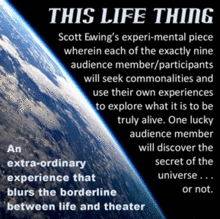 |  | EventThe Nugget Fringe Festival -- This Life ThingThis Life Thing: Scott Ewing's experi-mental piece wherein each of the exactly nine audience members/participants will seek commonalities and use their own experiences to explore what it is to be truly alive. One lucky audience member will discover the secret of the universe...or not.