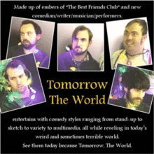 |  | EventThe Nugget Fringe Festival -- Tomorrow the WorldTomorrow the World- Made up of embers of "The Best Friends Club" and new comedian/writer/musician/performers. Entertains with comedy styles ranging from stand-up to sketch to variety to multimedia, while reveling in todays weird and sometimes terrible world. See them today because Tomorrow. The World.