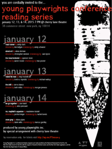 The Young Playwrights Conference is the culmination of a year's process of evaluating and developing the top plays from the Young Playwrights Inc. National Playwriting Competition. This year we have eight extremely talented writers joining us in New York City to network with theater professionals, see the best of New York theater, and, of course, fully participate in the rehearsal and presentation of their Off-Broadway staged reading.