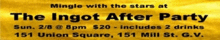 |  | EventThe Nugget Fringe Festival -- The Ingot After PartyMingle with the artists at The Ingot After Party. The Ingot will be held at 151 Union Square at 151 Mill Street in Grass Valley. Each ticket includes your admission and two drinks. Be sure to bring your supporter button. We'll see you there.