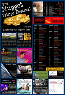 The brand new Nugget Fringe Festival is your local resource for new, exciting, cutting edge and otherwise unusual, non-commercial works from around here and around the globe. The producers and the artists are grateful for your patronage.  Thank you for supporting our efforts to foster new works. Please help us keep new works coming by spreading the word. You are a vital part of what's next.