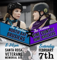 Come out and see Sonoma County Roller Derby's first bout of the season. The two home teams will bout it out on Saturday, February 7, 2015, at the Veterans Memorial Building in Santa Rosa. The Vets Building is located at 1351 Maple Avenue in Santa Rosa, across from the fairgrounds. It is a smaller venue, so purchase your tickets early!