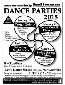 Not So Strictly Ballroom - Saturday Night Fever Dance Party Join us the third Saturday of the month for Vancouver's only GLBTQ ballroom and latin dance party. Free dance lesson at 8:45 pm - this month host and instructor Kathy Bradley will be teaching a class on disco.
