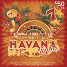 (EVENT IS SOLD OUT) Kimpton's Hotel Palomar Philadelphia hosts a night of glitz, glamour and good fortune with its 2nd Annual Glamsino Royale: Havana Nights event on February 19th from 7 p.m. to 9 p.m.