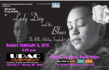 Purple Phoenix Productions presents entertainer Stacie Calkins in a celebration of the music of the iconic American Jazz vocalist Billie Holiday. Songs include "Lady Sings The Blues", "What A Little Moonlight Can Do", "Good Morning, Heartache", "You've Changed", "Them There Eyes", "I Cover The Waterfront", "Gimme a Pigfoot and a Bottle Of Beer", "Don't Explain" and the legendary "God Bless The Child"