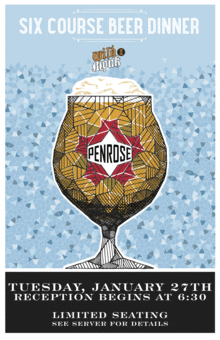 Tuesday, January 27th at 6:30PM join us as the Wild Monk Culinary Team joins forces with Chef Todd Feitl from Prasino as they expertly pair 6 Penrose Brewing beers with their creations.