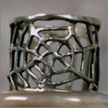 Ayaka Nishi grew up in the magical world of her mother's art. She too is fully versed in the details of nature and the principles of space. Additionally, Ms. Nishi was exposed to scientific information about anatomy through her surgeon father and grandfather's medical libraries. Her knowledge and admiration of anatomical form is deep. Her not only flowers, but also bones, spider webs, fish scales, honeycombs and wings inspire Ayaka's meticulous work. Following upon the netsuke traditions for which Japan is famous, Ayaka is a superb crafts artist in her precise and elegant forms. No detail is too small for her attention. Her work is made of materials from sterling to copper and incorporates pearls and other stones. Ayaka shows extraordinary promise in her work both as a purist and as a member of the Contemporary Japanese Art Movement so influenced by urban street fashion and the Goth movement. Her already popular Spine Bracelet will be available for public viewing and order.