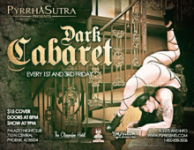 Every 1st & 3rd Friday experience the dark side of downtown Phoenix! Dark Cabaret features sexy circus and burlesque acts by Pyrrha Sutra, Cleodora, Carlos Montufar, Laura Cain, Nic Duchnowski, Camilla Cruelle, and guest artists! Stay after as the venue turns into a nightclub and dance the night away to industrial beats by Iseult. 21+