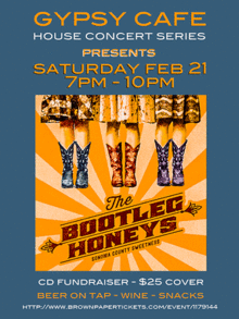 The Gypsy Cafe is proud to present The Bootleg Honeys February 21st, 2015 at 7 p.m.