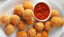Saffron Arancini Slow-cooked saffron risotto croquettes filled with Oaxaca cheese, chive butter and Lobster mushrooms (vegetarian, gluten-free)