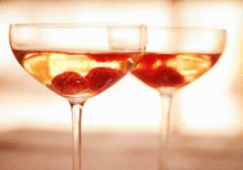 The Red Rose Mimosa Spanish Cava sparkling wine, Luxardo cherry, raspberry nectar