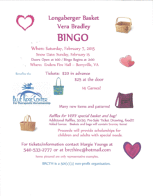 When: Saturday, February 7, 2015; snow date is February 15th. Where: John H. Enders Fire Hall, Berryville, VA Doors open at 1:00; Bingo starts at 2:00