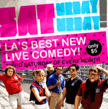 Saturday! Saturday! is a live comedy show featuring LA'S BEST NEW LIVE COMEDY.  Starring IMPROV, SKETCH & STANDUP comedians from NBC's Last Comic Standing, the Upright Citizens Brigade, the Groundlings, IO West Theater, The Second City, the Comedy Store & more.  Hosted by premier LA improv troupe, Robert Downey JR JR.  Plays the third Saturday of each month at the Sidewalk Studio Theatre in Burbank.  FREE beer, wine & bottled water for all guests over 21+ years of age.