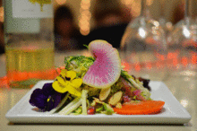 MENU First: Baby Spring Vegetable Salad - Heart of Palm, Sweet Roasted Carrot, Pickled Beet, Baby Radish, Garlic Ramps, Spring Onion, Frilly Mustard, Grape Tomato, Blood Orange, Basil, Tulip.