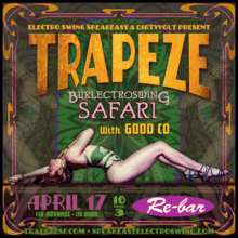 San Francisco's infamously wild electro-swing party slips into Seattle with enough subs, horns, and pheromones to light your loins and lose your laundry. Join the moveable feast as we cut the leash on the West Coast's lightning rod of big bass burlectro and feverish avant-bawd. Equal parts Weimar cabaret and wild speakeasy rave, Trapeze lures a bevy of underworld flappers, vipers, vamps, and villains to a bass-fueled night of jazz age abandon. The jungle drums are getting louder.