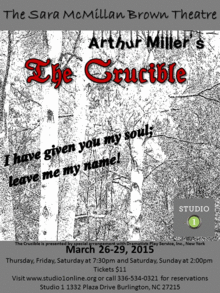 The Crucible is a a Tony Award-winning play by the American Playwright Arthur Miller, Written in 1953, it is a dramatized and partially fictionalized story of the Salem witch trials that took place in the Province of Massachusetts Bay during 1692 and 1693. Miller wrote the play as an allegory of McCarthyism, when the U.S. government blacklisted accused communists. Miller himself was questioned by the House of Representatives' Committee on Un-American Activities in 1956 and convicted of "contempt of Congress" for refusing to identify others present at meetings he had attended. This classic play about the witch-hunts in 17th century Massachusetts paints a searing portrait of a community engulfed by hysteria. In the rigid theocracy of Salem, rumors that women are practicing witchcraft prod the town's most basic fears and suspicions; and when a young girl accuses Elizabeth Proctor of being a witch, self-righteous church leaders and townspeople insist that Elizabeth be brought to trial. The ruthlessness of the prosecutors and eagerness of neighbor to testify against neighbor brilliant illuminate the destructive power of socially accepted violence.