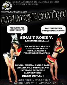 Queen Bee's presenta Una Noche de Cabaret, inspirada en la Epoca de Oro del cine Mexicano. Vengan a disfrutar el romance que inspiro la elegancia. Y el sabor que trascendió a lo tropical de la era. Un espectáculo de variedad con música, baile y canto. Nuestras rumberas Sinaí Y rosie los llenaran de vida y sabor. Mambo, rumba, chacha, cumbia, jazz, tango y mucho más. Boletos en venta ya. Baile Despues del Show!