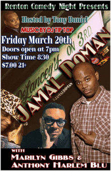 Over the past year we have been blessed with the talents of comics from LA, Boston, NYC, Houston, Atlanta, Jersey, SF, Las Vegas and Washington DC. What brings all these funny people to Renton, WA... DELANCEY's on 3rd! Every month for the past year Comedy and Music converge at Downtown Renton's newest hotspot DeLancey's on Third! Hosted by Tony Daniel THE FRESH PRINCE OF TUKWILA! Seattle DJ TIP TOP spins your favorite songs before and after the show.