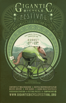 Gigantic Bicycle Festival is the Pacific Northwest's annual summer celebration of bicycle culture. The three day, mid-August festival features a diverse, multifaceted and regionally representative mix of live music, hand-built bicycles, visual & performance art, film, comedy, guest speakers, sculpture, interactive installation, NW makers, brews, and camping.