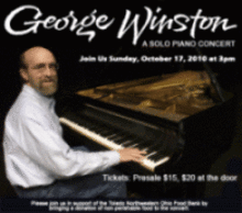 Solo pianist George Winston, best known for his seasonally themed recordings including DECEMBER, AUTUMN, WINTER INTO SPRING, and SUMMER, presents a solo piano concert.
