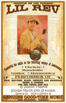 Known as a âprotector of old songs, poetry and stories,â Rev has been called a âWisconsin treasure,â (-Ann Schmid-UWM Folk Center). His many awards and frequent travels have garnered him a loyal and growing fan base amongst lovers of all things, Ukulele, Folk, Old Time, Harmonica, Jewish Music & Culture, American Labor History and Respect for our Elders!