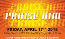 Enjoy a night of good old gospel music as Great Plains Harmony presents Praise Him. Great Plains Harmony and it's quartets will treat you with some of your favorite gospel tunes. Also featuring special guest Acappela Xpress.