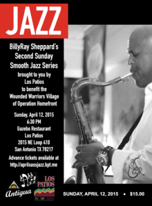 Smooth jazz, hot nights, great food and good company combine to create the perfect atmosphere for Second Sundays. Los Patios provides a beautiful, tranquil setting for smooth jazz. Come early and browse the shops, art gallery or meet at the bar with friends for a pre-concert cocktail. This month's event will benefit the Transistional Housing Program of Operation Homefront.