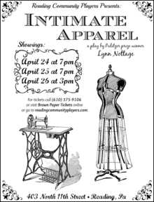 Esther lives in a boarding house run by the matronly Mrs. Dickson. Esther works tirelessly creating custom made lingerie for New York's uptown ladies and its downtown ladies of the night. Straddling these two worlds, Esther, who is plain and sensible, yearns for love. But the most romance her lonely life offers is her encounters with Mr. Marks, the Orthodox Jewish supplier of exotic fabric. The wonderful fabrics provided by Mr. Marks and her secret dream of opening a beauty parlor sustain her until she receives a letter from George Armstrong, a Barbadian laborer working on the Panama Canal, asking her to correspond with him. Esther welcomes this possibility, but is compromised by her inability to read and write. She relies on others to write to George for her. As the relationship flourishes through the exchange of letters, Mrs. Dickson counsels Esther to be cautious. Against Mrs. Dickson's advice, Esther marries George upon his arrival in New York. Marriage to George is not what Esther imagined. As Esther navigates her relationship with George, Lynn Nottage, the playwright, comments on issues of race, the position of women at the time, love and self-worth.
