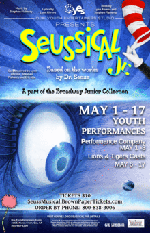 Seussical, Jr Horton the Elephant, the Cat in the Hat, and all of your favorite Dr. Seuss characters spring to life in Seussical JR., a fantastical musical extravaganza from TONY winners Lynn Ahrens and Stephen Flaherty (Lucky Stiff, My Favorite Year, Once On This Island and Ragtime).