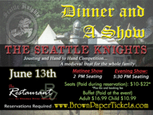Enjoy dinner from The Restaurant at Rhodes River Ranch while experiencing the Seattle Knights! *Meal purchased separately at the event*