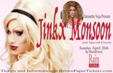 Jinkx Monsoon the winner from RuPauls Drag Race Season 5 will perform Live. She will be hosted By Miss Samantha Vega and The show will feature Pacifica Rim and other Guests.
