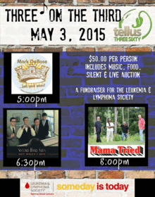 Tracy Artus of Miesse Candies will be hosting her Leukemia & Lymphoma Society Woman of the Year campaign finale at Tellus360 in an evening filled with great food, great fun, and great music. The evening will feature performances from Mark DeRose, Second Hand Suits, and The Mama Tried Band. There will be plenty of food and a cash bar. Help put Tracy over the top in her quest to raise money to battle cancer.