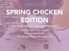 Presentation Party Night is a monthly lecture series based in Bushwick, Brooklyn, and founded on the idea that everyone has something to teach. Our goal was to create a forum for learning and progressive discussion in our community, but to make it free and fun. PPN combines a party atmosphere with informational programming to make a raucous celebration of peer education, food, and beer. Our events happen on the 3rd Sunday of every month. Everything is totally free and open to the public - we provide beer and food (potluck style - bring something to share) and we survive on donations from the audience.