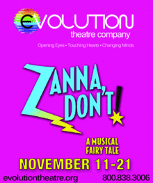 Zanna Don't Book, music and lyrics by Tim Acito, additional lyrics by Alexander Dinelaris Nov. 11 - 21 Welcome to Heartsville High, set in a world where everyone is gaywell, almost everyone. The big man on campus is the chess champion and the captain of the football team is made cool by being cast as the lead in the school musical. The students write a controversial show called "Don't ask, Don't tell" about straight people in the military, which becomes the catalyst for a young man and woman to fall in love. Enter Zanna, a magical, musical fairy who, with a wave of his wand, brings true love to one and all.