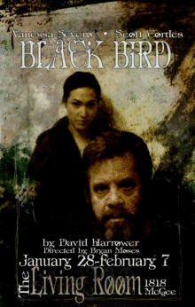 Blackbird by David Harrower debuted in 2005 at the Edinburgh International Festival before moving to London's West End and winning the Laurence Olivier Award for best new play. It went on to play in Stockholm, New Delhi, Bangalore, Prague, Tokyo, Mexico City, Montreal, San Francisco, New York, Chicago, Baltimore, and now makes it's Kansas City debut at The Living Room. Two people who once had a passionate affair meet again fifteen years later. Ray is confronted with his past when Una arrives unannounced at his office. Guilt, rage and raw emotions run high as they recollect their relationship. Without any moral judgments, the play never shies away from the brutal shattering truth of an abandoned and unconventional love.