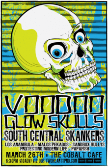 Saturday March 26 VOODOO GLOWSKULLS SOUTH CENTRAL SKANKERS Los Arambula Malos Pekados Sandbox Bullies Protesting Modern Life PapaFish