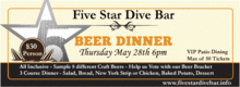 Join us for 8 Different craft beers, a 3 course steak or chicken Dinner and our Beer bracket to choose the crowd favorite. $30 per person.