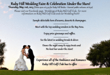 Join us at one of the East Bay's premier Wedding Venues for the Wedding Fair that you don't want to miss. Come and view the best vendors around, enjoy a complimentary glass of champagne, and appetizers. The Wedding Fair will take place from 6:30 - 8:30. The fun doesn't end there, stay for the Celebration Under the Stars! It will include a no host bar, appetizers, DJ and dancing. Experience the magic that Ruby Hill Golf Club has to offer, and discover what makes it one of the most sought after venues in the Bay Area.