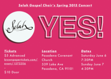 Selah Gospel Choir is proud to come back to you, bringing all of our LOVE and GLORY to Pasadena Covenant Church on June 6th & 7th.