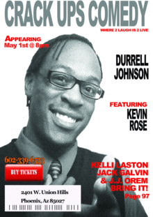 Funny man Durrell, started his comedy career less than 4 years ago on a bet from a friend. In those short years he has quickly become well known all around the Valley. He runs his own comedy show as a producer and host for the past 3 years at Stingers Bar in Glendale, AZ along with performing at numerous venues in the valley including Stand Up Live, The Tempe Improv, House of Comedy and Stand Up Scottsdale.