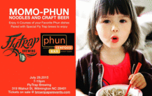 Don't miss this joint collaboration between Flytrap Brewing and Wilmington's Top Chef Keith Rhodes. The event will feature all your Phun favorites including noodle bowls, summer rolls, pork spring rolls and much more. Ticket price includes a four course dinner with three signature craft beers. Remember only 40 tickets are available.